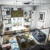 Yêu cầu của chủ nhân chính là muốn biến không gian sống của mình thành một bờ biển thu nhỏ. Ở đó, gia đình họ sẽ tận hưởng cảm giác bình yên, thư thái mỗi ngày. Vì thế, hẳn bạn sẽ không ngạc nhiên khi từ màu sắc cho đến phụ kiện trang trí đều tập trung làm nổi bật chủ đề biển xanh. Mọi góc nhỏ trong nhà đều được chăm chút tỉ mỉ. Đầu tiên là khu vực phụ ngay cửa ra vào, nơi đây được đặt hai chiếc ghế đơn và bàn thấp êm ái, bên trên tường là hình ảnh chú cá biển ấn tượng. Những ô cửa rộng thoáng mỗi sớm mai đều đón nhận những tia nắng ấm áp và thoáng đãng. Vì thế, ngoài chức năng nghỉ ngơi, đón khách, nó còn được ưa chuộng sử dụng làm góc đọc sách lãng mạn cho gia chủ.