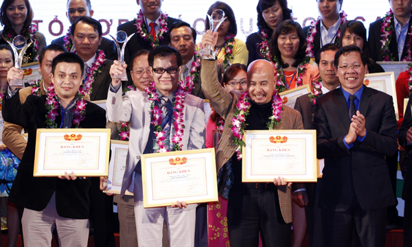 | Bí thư Thường trực T.Ư Đoàn Phan Văn Mãi (thứ nhất bên phải) trao cúp và bằng khen cho 3 giảng viên doanh nhân được yêu thích nhất . |